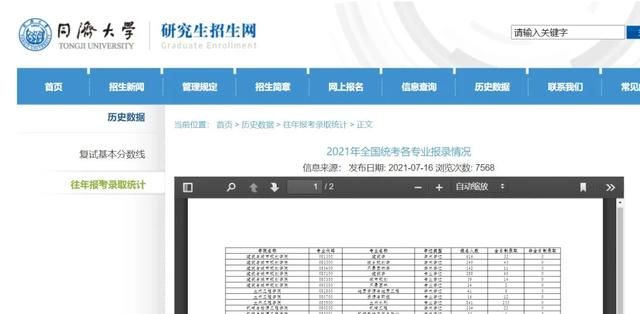 网页链接2021考研报录比:2021年全国统考各专业报录情况-同济大学研究生招生网