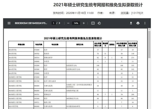 网页链接:招生统计-沈阳药科大学研究生教育网