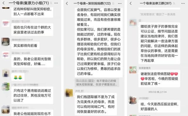 对于抚养费的问题,「一个母亲」专门开了法律援助群,鼓励每个妈妈争取自己的抚养费。每个群有30多位律师,他们轮班制,每个星期都会答疑。