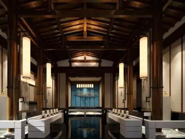 这家老板肯定是个很有境界和情怀的人, 店名的寓意是"心安身自安 ,身安心自宽"。 进门的小石潭、 青竹板、 环形竹台将本就宽阔的空间错落开来 。营造了曲径通幽的诗意, 很有些苏州园林的雅致。