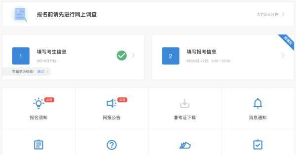 广大考生需要注意,报名包括网上报名和网上确认(现场确认)两个阶段。所有参加硕士研究生招生考试的考生均须进行网上报名,并在网上或到报考点现场确认网报信息和采集本人图像等相关电子信息,同时按规定缴纳报考费。