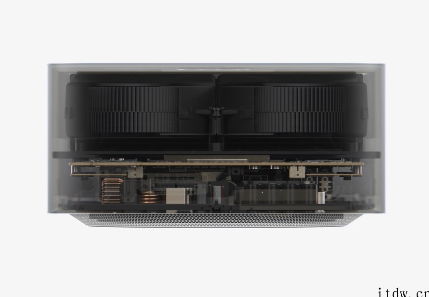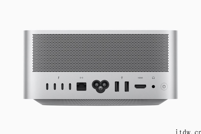 Mac Studio 还采用了创新的散热设计。双离心风扇、精确放置的风道以及外壳背部和底部上的逾 4,000 个散热孔,共同构成了独特的散热系统,能够引导气流流经内部元件,帮助高性能芯片降温。苹果称得益于 Apple 芯片的高能效,即便是在运行最繁重的任务时 Mac Studio 也能够始终保持安静。