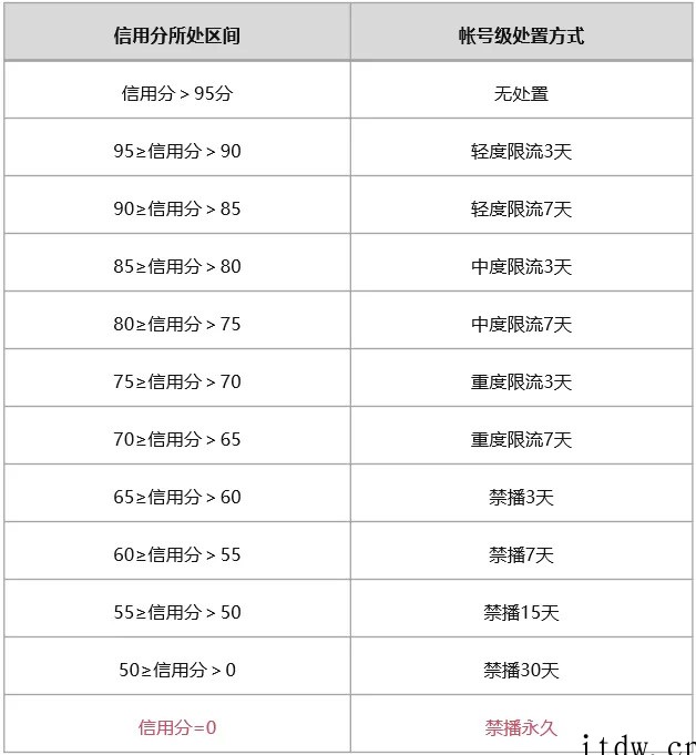 据悉,在违规查询中,该板块整合了短视频和直播的账号状态。具体规则为:当信用分 > 95 分时,账号状态正常;当账号≤95 分时,将会触发信用分阶梯式的对应处罚,如账号会呈现“账号被轻度限流”或“暂不可播”等非正常状态。具体分值区间及对应的处置方式如下: