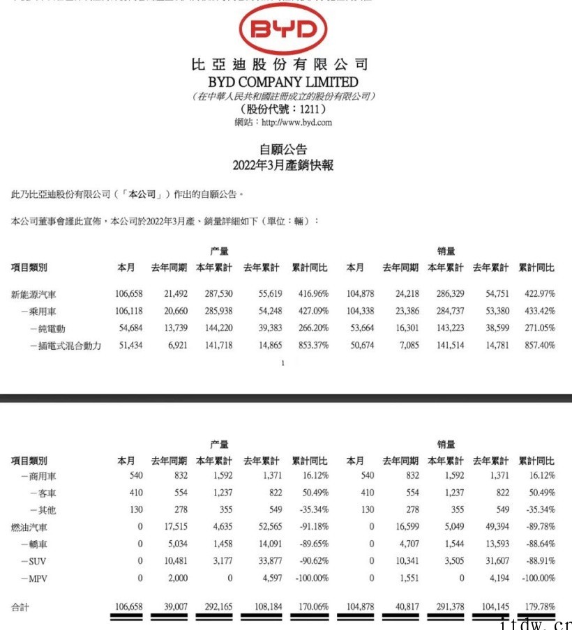 比亚迪公布的 2022 年 3 月产销快报中,有一组数据相当“惊奇”:3 月份比亚迪燃油汽车产量为 0。与此同时,比亚迪宣布从今年 3 月起已经停止燃油汽车整车生产,专注于纯电动和插电混动汽车业务。