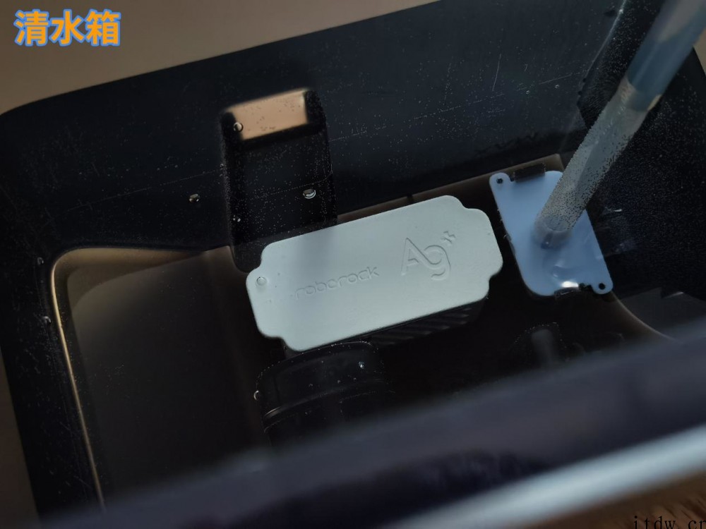 石头 G10S 上下水套件还内置了清洁液储存仓,一次可倒入 1L 清洁液,每次按 1:200 比例自动投放,省去了后续添加清洁液的麻烦。