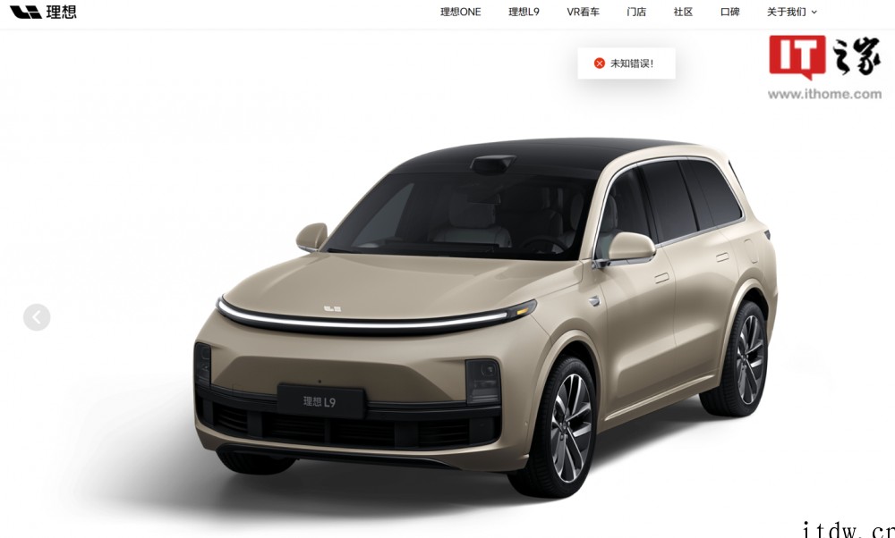 理想 L9 发布后,部分用户反馈称打开理想官网显示未知错误,无法完成下单。