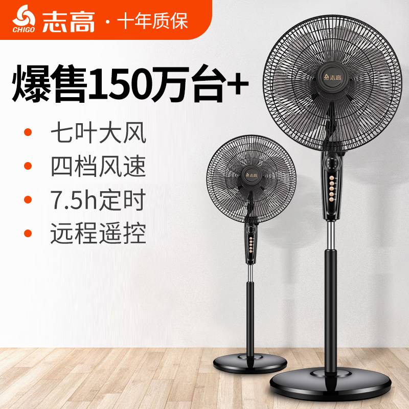 志高电风扇落地扇家用立式轻音台式遥控扇宿舍摇头小风扇大风力