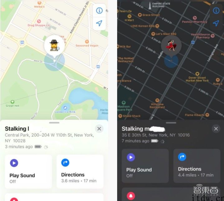 ▲与 AirTag 关系的手机能够 表明俩位被试的行迹