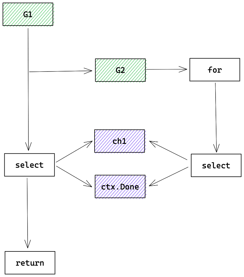 - 主协程 select channel 和 cancelCtx.Done,子协程完成或取消则 return