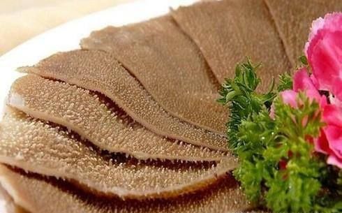 等待锅中的牛百叶窗煮熟后,捞起,放入冷水中冷却,沥干水分。