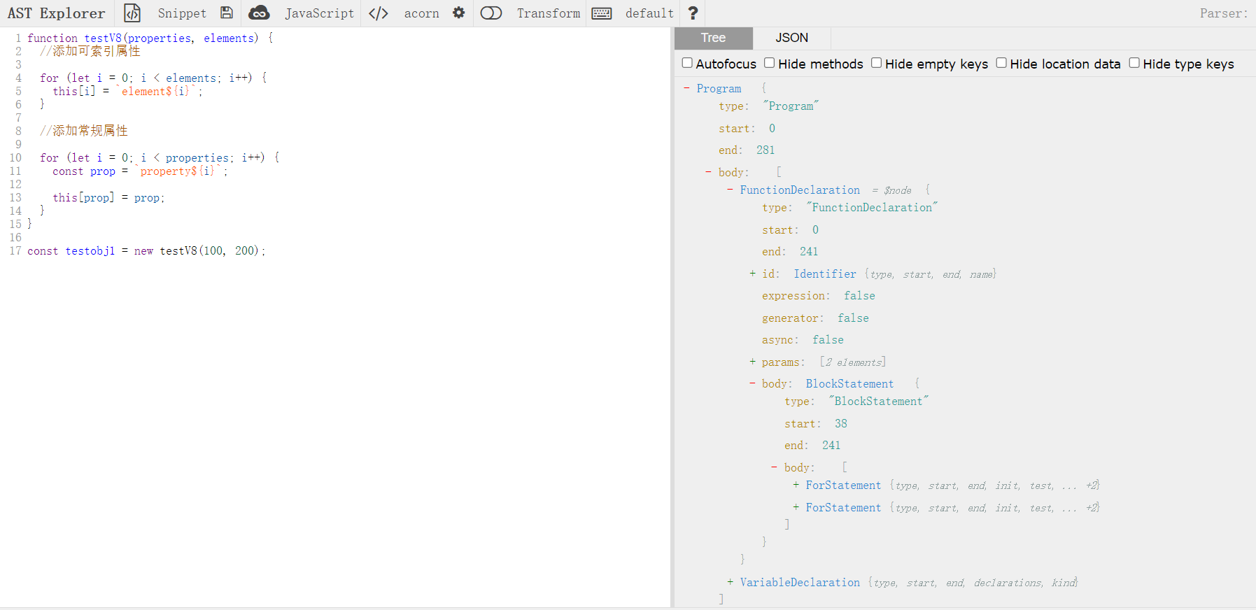 V8引擎会先将javascript代码转换成AST(抽象语法树),事实上所有的编程语言都会将源代码解析成抽象语法树(abstract syntax tree, AST)。