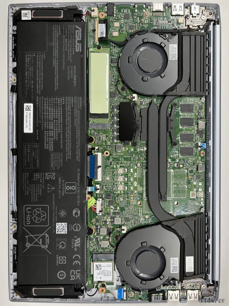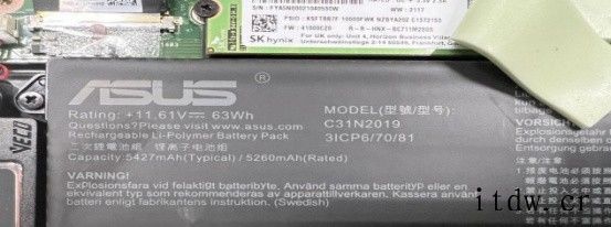 最下方是一块 63Wh 的电池,作为一台 14 寸的笔记本,这可以说是相当大了,