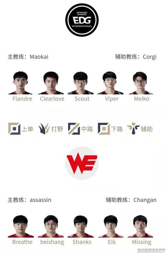 今日1700的比赛是WE战队对决EDG战队,EDG在常规赛排名第二,而WE则在常规赛排名第七,因此本轮比EDG拥有优先选边权。