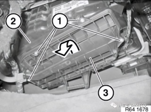 前挡玻璃处 E8X 空调滤清器位置如图④