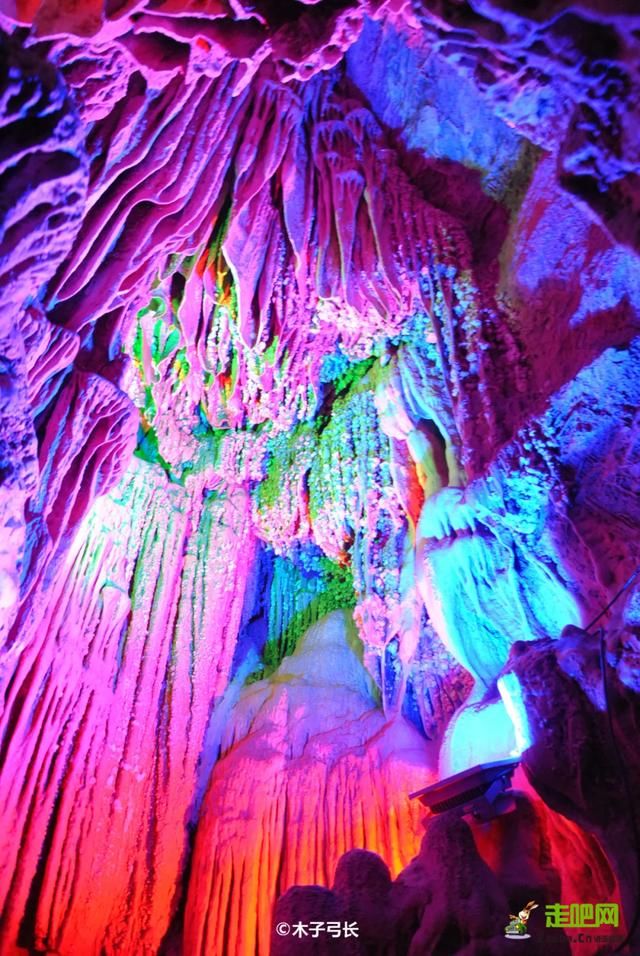 斑斓炫目的溶洞这里也有,经灯光点缀成一片五彩的世界,绝对让你目不暇接。