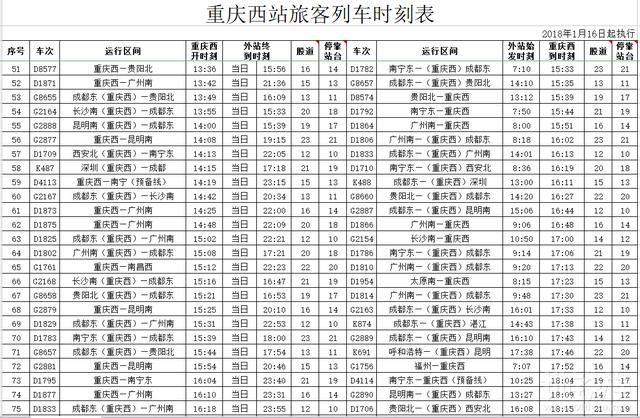 重庆西站的通车已经进入了倒计时重庆西站时间表,目前重庆西站时间表,网上已经流出了重庆西站初期运行的完整时刻表。小编将其整理如下重庆西站时间表,供大家一睹为快(由于原始图片被压缩重庆西站时间表,请点击放大原图重庆西站时间表,或保存后手机再浏览)