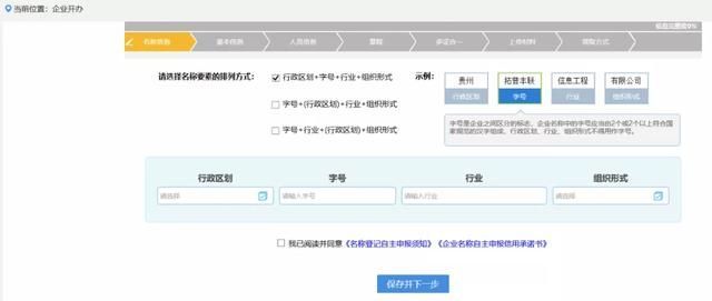 (1)如果登录的账号没有在办的业务,系统会自动跳转到名称申报界面,填写行政区划、字号、行业和组织形式,勾选下方同意按钮,点击【检查是否可用】进行核名,查看列表里提示的已在业、已登记的名称是否有与拟登记的名称相同的,有则更改字号,没有则关闭窗口网上怎么注册公司免费的;点击【保存并进入下一步】即可完成企业核名(核名次数无上限)。
