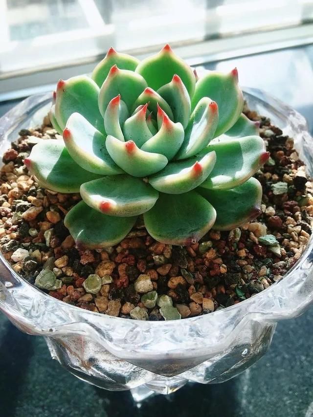 吉娃娃,要把你养的胖胖的。特意给你们住了水晶房子,和你的颜值还是很配哦!我发现花盆不一定需要底下带孔的,只要铺上陶粒,配好颗粒土,一样可以很透气的,我很多盆都是没有孔的,肉肉反而还长势不错。