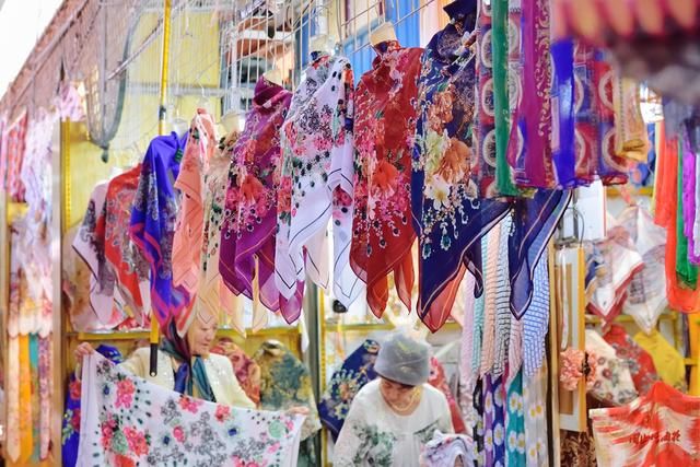 东门大巴扎分为室内室外两大部分,室外经营生产生活资料、干货区和美食一条街喀什干果批发市场在哪里;室内售卖商品价值较高的专业市场,包括玉器玉石、高档皮草、首饰,地毯、丝织品、印花布、艾德莱斯丝绸、花帽、英吉沙小刀、各式维吾尔族民族乐器等等。