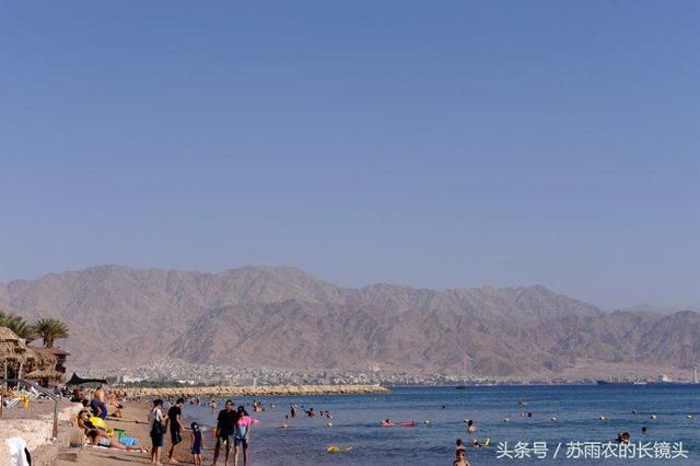掐着表把主要景点走完,再急匆匆的从西克峡谷中走出,这就结束了佩特拉的旅程。出租车已经在酒店门前等好,一路无话,前往边境。由于犹太新年假期已经结束,回程的人似乎多了些,不过花了一个多小时也过了关。需要注意的是,从约旦出境也要交50JD(这可比以色列那边交的贵一倍,相当于500人民币),而且在入境约旦和佩特拉景区分别盖章的文件也要交回去。正逢炎热的下午,我上了已经被晒成烤箱的标致301,开启返回耶路撒冷的长途旅程。不过我先把车拐了个弯,来到离边境仅有几公里的埃拉特。这是以色列和埃及、约旦交界的城市,就位于亚喀巴湾,是红海的北头伸进去的一部分。这城市的海边也有不少酒店,度假气息浓厚,虽然说沙滩看着一般般,好歹也是感受了一下红海,在沙滩的饭馆吃点,恢复一些体力。