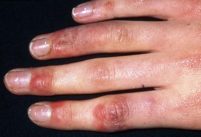 比如手长期浸于0℃以上的冷水中,进行洗衣、刷碗等工作,就可能会患上冻疮。