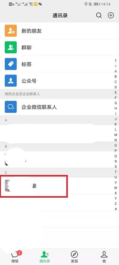 2、在【通讯录】中找到我们想要查看的微信好友,点击进入到微信好友的信息界面;