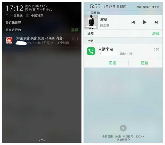 通知栏采用高斯模糊的亮色之后,更能突出消息内容在通知栏中的显示,并且对于一些常用的应用可以直接通知栏进行相应的操作,比如来电和短信的直接回复,而不用再打开另行打开短信APP了。