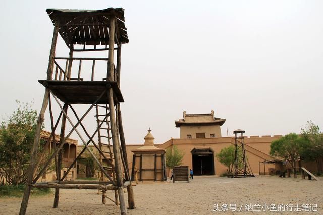 这座处在戈壁大漠中的古城池建得相当有气势,“襟带西域”的匾额挂在高高的城墙上,城门下配有大炮以及刺刀。远远看去,有种似曾相识的熟悉感。突然灵感一闪,这不正是电视剧《神探狄仁杰》的场景么?悠悠羌笛,大漠戈壁,月如刀,沙如雪,风沙扑面,元芳面带倦色,风尘仆仆。狄大人面色沉重,深邃的眼神似乎不断思索着什么……